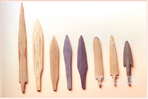 선사시대 홈 소장유물 선사시대 프린트 선사시대 상세보기 - , 제목, 내용, 파일, 작성자등의 정보를 제공합니다. 제목 돌화살촉(磨製石鏃) Stone Arrowheads 유물명돌화살촉(磨製石鏃)Stone Arrowheads크기길이 8.5 ~ 17.4㎝소장기관청주대학교 박물관柳葉形과 삼각형 등 다양한 형태의 화살촉이며 재질도 단단한 편마암 계통과 연질이 섞여 있다. 오른쪽 끝의 화살촉은 실용성이 있어 보이나 나머지는 부장용으로 제작되었을 것으로 추정된다.유물정보의 설명 및 사진에 대한 저작권은 청주대학교박물관에 있으며, 청주대학교박물관의 동의 없이 소장품 정보를 무단으로 복제하거나, 상업적으로 이용할 수 없습니다. 파일 1330997026880.jpg 작성자 김경훈 목록 이전글 돌도끼(磨製石斧) Polished Stone Axes 다음글 돌창·간돌검(磨製石槍·石劍) Polished Stone Spear and Daggers